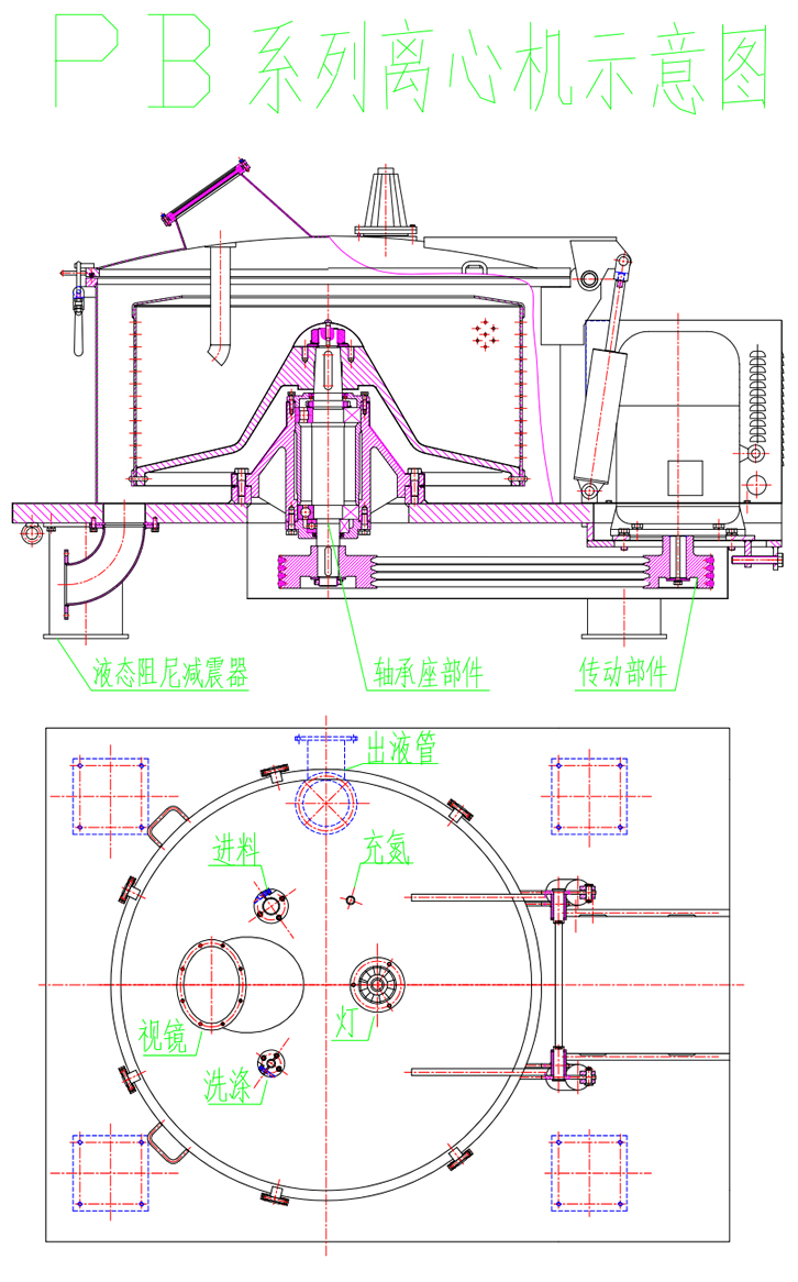 PB系列離心機是根據國家藥品生成GMP規范之要求,設計的一種密閉操作、間歇工作式離心機。大翻蓋結構設計,機蓋有機械平衡裝置,開啟蓋安全省力,密閉操作。物料從機蓋上加料管加入,經轉鼓告訴回轉進行分離,對物料進行洗滌,分離結束后,開蓋由人工卸料。